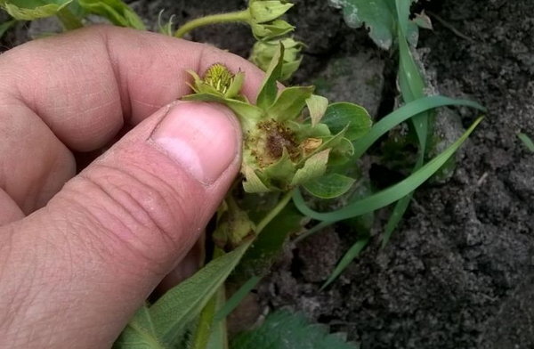 Причины засыхания завязей у клубники: · термический ожог из-за полива растений холодной водой в жаркую засушливую погоду · нашествие кротов, медведок, муравьев, хрущей и других вредителей, повреждающих корневую систему клубники; · нехватка фосфора и калия; · распространение грибковых болезней, таких как мучнистая роса, ржавчина, листовые пятнистости, антракноз, вертициллезное увядание; · избыточный, либо недостаточный полив, в первом случае корни гниют, а во втором - подсыхают. Что делать при засыхании завязей клубники: · поливайте клубнику из расчета 10-12 л воды на 1 м2 грядки; · мульчируйте грядку спанбондом, черной пленкой, соломой или другим подручным материалом. Так вы защитите почву от пересыхания, а растения - от сорняков и вредителей; · высаживайте рядом растения, которые отпугивают вредителей и благоприятствуют росту клубники, такие как ирисы, тюльпаны, клематисы, бархатцы, мята, жасмин, петрушка, лук, чеснок; · своевременно собирайте урожай, удаляйте и сжигайте листья с приз