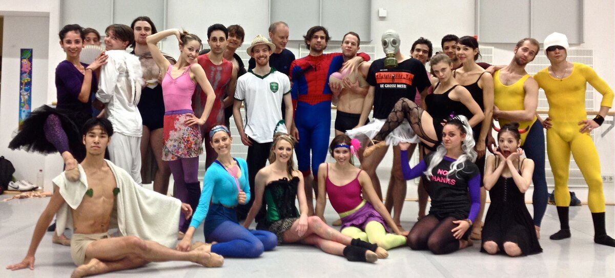 Недавно прошёл финал «Евровидения», там опять была Кончита Вурст. Да ещё и близится конец театрального сезона в Германии. И это напомнило мне сразу одну традицию в труппе Лейпцигского балета. Каждый последний балетный класс в сезоне (а мы классы делаем каждый день) мы завели традицию наряжаться во что-то весёлое и экстраординарное. Так мы отмечали начало отпуска и просто веселились. По сути это было как карнавал. А в 2014 году победа Кончиты Вурст была у всех на слуху. И мне ничего более яркого в голову не пришло, как одеться Кончитой. Оставалось только воплотить это на уроке. Даже взял парик у гримёров. Костюм ребятам не показывал и в последний момент в образе зашёл в зал. Поржали тогда на славу. Ребята тоже кто во что горазд. Костюмы делали из подручных средств и своей репетиционной формы. Даже педагоги участвовали. Это в какой-то степени объединяет коллектив и руководство. Хотя и без этого были хорошие отношения в труппе. Все такие уроки уже просто прикол, чем занятия. Больше