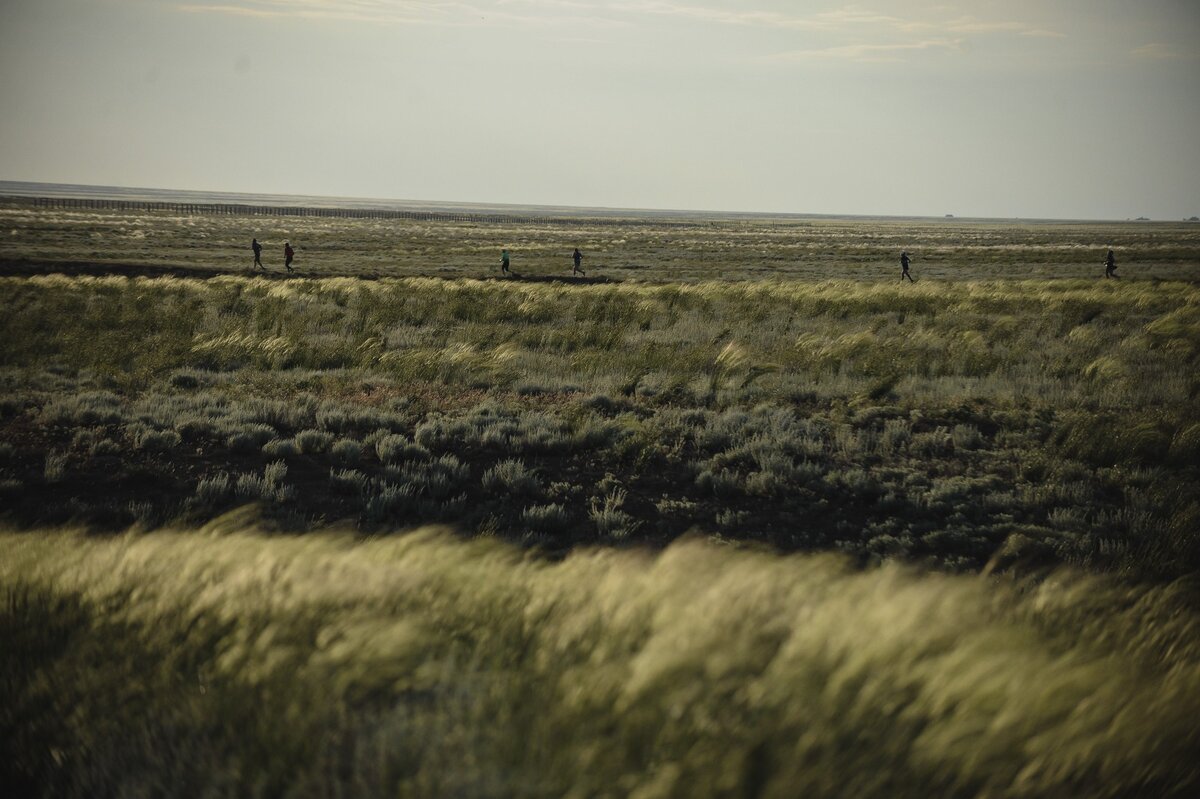 О чем-то сверхзаумном думать вряд ли получится. Идет большая концентрация на поверхность, по которой бежишь. Дикая местность, ночь, а фонарик освещает только два метра впереди. То гора, то песок, то ямы. Я закачал специально заранее музыку на пять часов, но после пары песен понял, что у меня мозг просто начинает уставать. Я смотрел на людей, которые бежали впереди, шутил сам над собой, пытался какие-то идеи проработать. Вообще есть специальные методики. Кто-то считает шаги, кто-то пытается словить так называемое тоннельное мышление. Когда мозг частично как будто отключается, смотришь в одну точку и ни о чем не думаешь. А когда рассвело, смотрел пейзажи. Маршрут пролегал вокруг озера Эльтон, отсюда и название. Вокруг степь. Практически нет деревьев. Скорпиончики маленькие бегали.