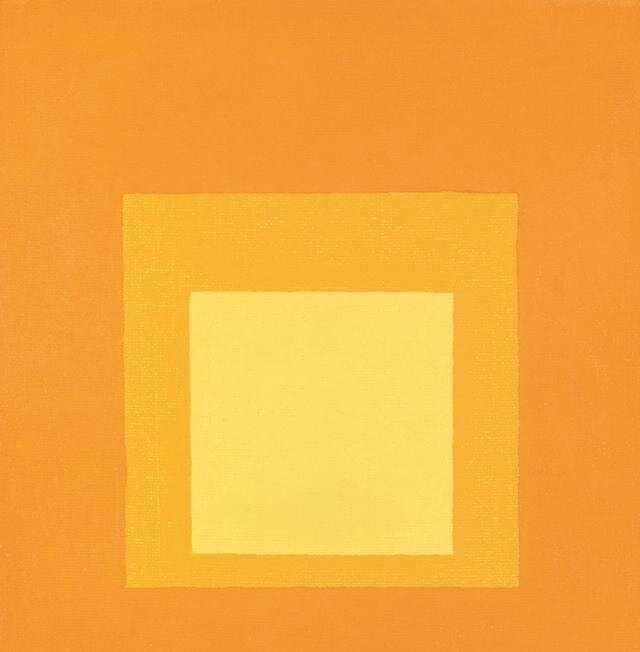 Джозеф Альберс — баухаусец, маэстро хроматических фуг и оттеночный проповедник. Проще всего понять и воспринять серию "Homage to the square", которую он начал в 62 года и продолжал до самой смерти, оставив более тысячи слоёных квадратами работ (на которые мы смотрим как Луи Леруа на «Бульвар Капуцинок» Моне в 1874-м). Иногда в одном предложении могут упомянуть его и Казимира Севериновича, но кроме слова «квадрат» ничего общего там нет. Такое он пишет о своих квадратах: Seeing several of these paintings next to each other makes it obvious that each painting is an instrumentation in its own.