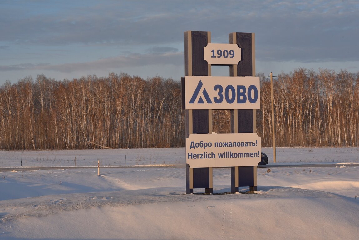 Надписи на дорожных указателях и вывесках в Азовском районе часто дублируются на немецком языке