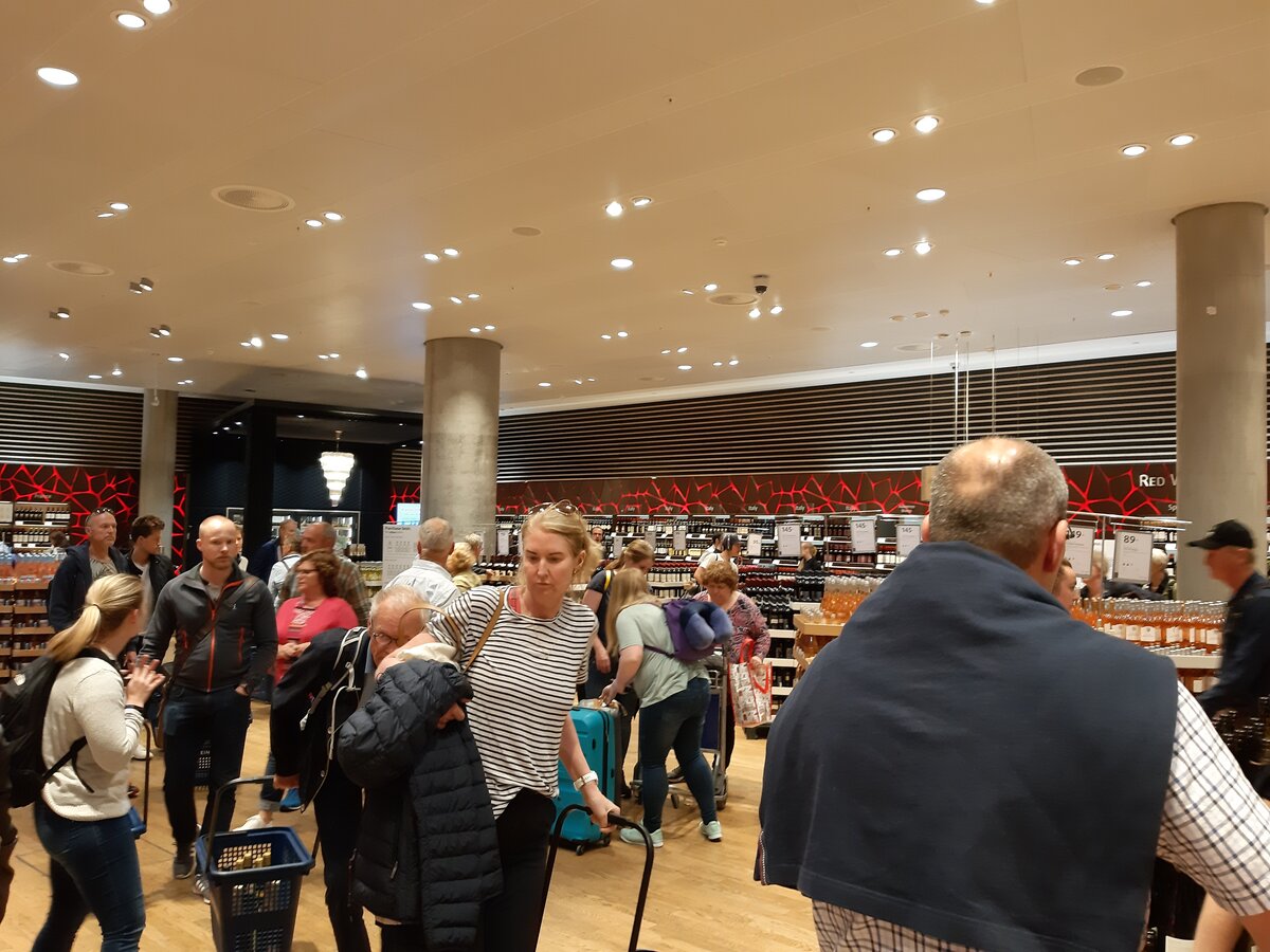 Я, так случилось, в Копенгагене, а утром был в Осло, где оставил в гостинице зарядку от компьютера, поэтому пока будут недлинные записи. Вот вам сегодня два норвежских алколайфхака. Норвежские цены — это нечто (хаха, сегодня я увидел датские). А всё, что крепче 4,7%, в Норвегии продаётся исключительно в государственных монопольных магазинах Vinmonopolet. По ценам (см. выше), которые принято называть астрономическими. Я в эти магазины даже заходить не стал, чтобы потом не страдать посттравматическим синдромом. А вот аэропортовых дьюти-фри цены относительно божеские. И, поскольку в аэропорту Осло беспошлинный алкоголь продают в зоне прилёта тоже, норвежцы и иностранцы пользуются этой возможностью по полной. Там прямо ажиотаж. Вот, посмотрите. Так что если вы боитесь, что не перенесёте красоты норвежской природы без алкоголя, то купите его в аэропорту, как прилетите. Не злоупотребляйте, конечно. Хотя вам и не дадут: там висят очень видные таблички, на которых подробно нарисовано, сколько