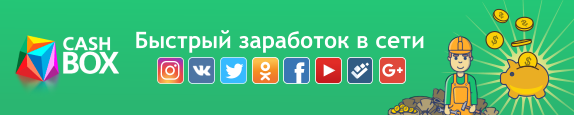 CashBox - отличный заработок в социальных сетях Сервис Кэшбокс позволяет зарабатывать в социальных сетях на выполнении небольших заданий. Заработок доступен для всех желающих, сразу после регистрации на сайте. В этой статье мы во всех подробностях расскажем как пройти регистрацию на cashbox.ru, как привязать свои аккаунты в социальных сетях и начать зарабатывать реальные деньги. Для заработка необходимо иметь зарегистрированные профили в следующих социальных сетях: ВКонтакте, Facebook, Одноклассники, Instagram, Twitter, Google Plus, YouTube. Регистрация и вход на Cashbox Для регистрации перейдите на сайт cashbox.ru. Регистрация и вход на сайт возможны с тремя различными способами. Рассмотрим более подробно каждый из них. Заработок на Кэшбокс Работать на сервисе cashbox.ru возможно пятью разными способами. Рассмотрим каждый их них в деталях: В качестве вывода можно утверждать, что cashbox.ru — достойный сервис для заработка в интернете. С его помощью любой желающий может зараба