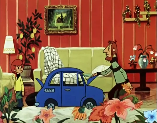 "Каникулы в Простоквашино" Порой угадать тачку из мультика было легко. Скажем, в микролитражке, которую дядя Федор с папой чинили в "Каникулах в Простоквашино", легко угадывается знаменитый "Горбатый" он же ЗАЗ-965. Знаменит он был прежде всего тем, что некоторое время считался самым доступным автомобилем в СССР. Хотя купить его все равно было не просто – заветную открытку на покупку автомобиля граждане ожидали годами... "Автомобиль кота Леопольда" Но "Запорожец" из Простоквашино – это легкотня. Попробуйте-ка угадать на чем ездил герой мультфильма "Автомобиль кот Леопольда"! Подразумевалось, что самый миролюбивый мультипликационный кот мира построил автомобиль сам. Причем, самоделка получилась крутая. Двудверный спортивный родстер красного цвета с кучей навороченных опций и приятным дизайном. Вы удивитесь, но у этой машины есть реальный прототип. Взгляните на фото английского родстера Reliant Scimitar SS1 (по-русски читается как "Рилайнт-Симитар"). Представленный на "Британском ме