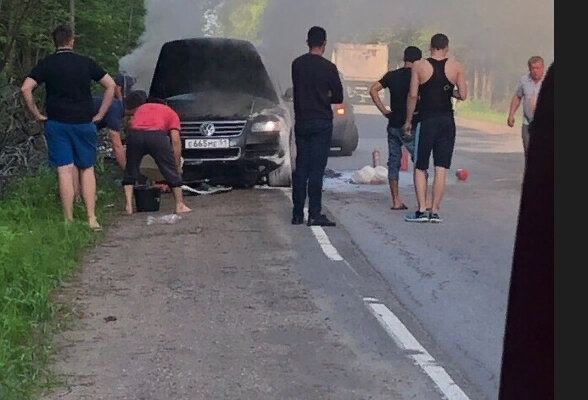 Во Всеволожском районе загоревшийся Volkswagen перекрыл дорогу (ФОТО)