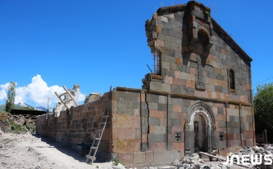 "В результате самовольного решения жителей села и инициатора строительных работ Юрика Царукяна, – говорится в сообщении, – внешний вид церкви XIX века резко изменился. Стены памятника культурного наследия были обрушены силой, один из фасадов храма практически полностью разрушен"...