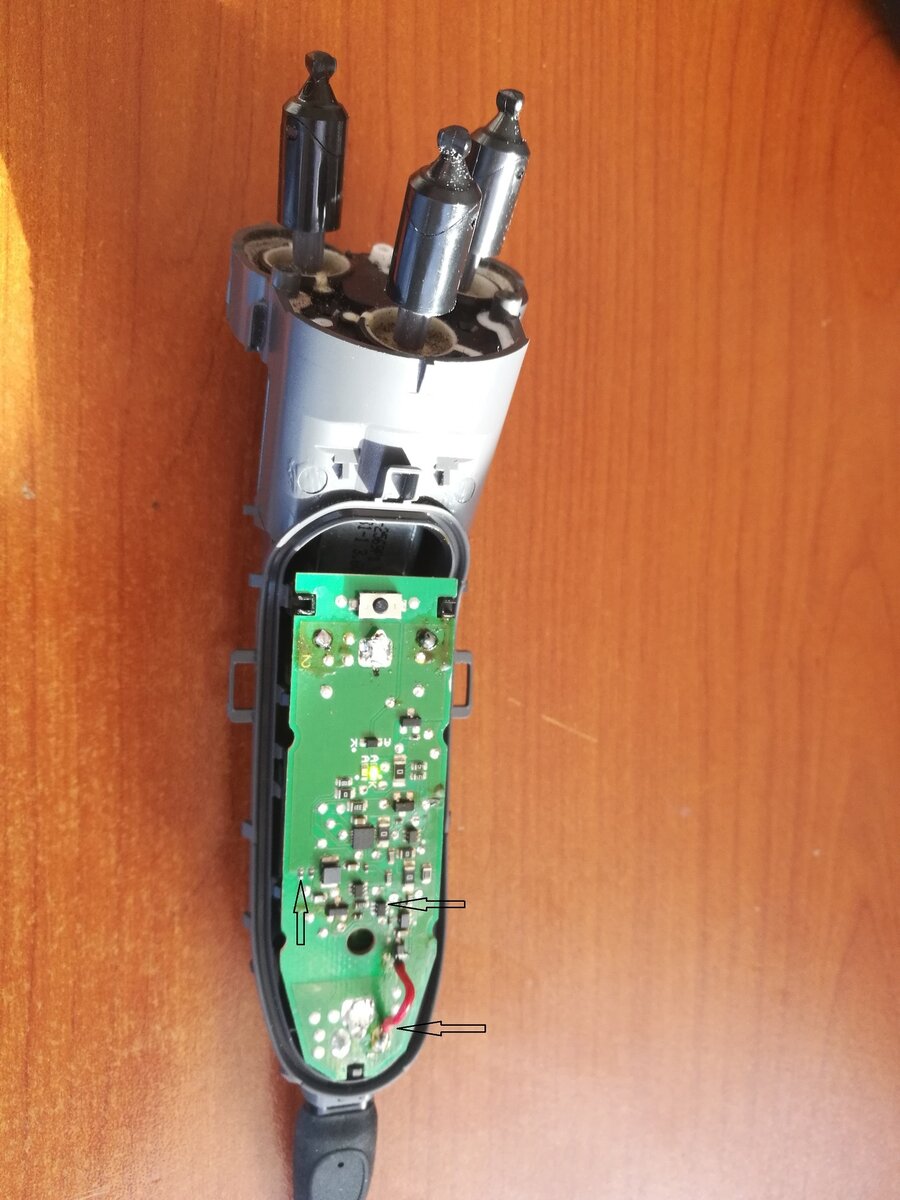 Представьте себе утро, тяжелое утро, нужно ехать на работу, выходные пролетели быстрее чем обычно, активный отдых, покатушки... Доходим до умывальника, берем в руки электробритву Philips Series1000, глаза еще не промаргались, свет яркий режет, тем не менее приводим себя в порядок. Смотрим на бритву, горит красным, батарея почти разрядилась. Так где этот шнурок? А вот он, вроде он, да точно он других вроде небыло. Туго подключается. Иииииии... БАБАХХХХ !!!!! Блин! Шур не тот. Бритва признаков жизни не подаёт. Печаль. Вот так, как-то началась история ремонта электробритвы. Принесли мне её без надежды на восстановление. Ремонт в сервисе не рентабельный, дешевле купить новую, а премию платили последний раз 2 года назад, бюджет расписан на пол года вперёд. В общем фоток не много, процесса ремонта нет. По результату Стрелками отмечено, что заменено. Диод к которому провод припаял не отметил . Долго ждал транзистор, там из 2 в корпусе на 6 ножек, обозначение t13. Потом оказалось, что батар