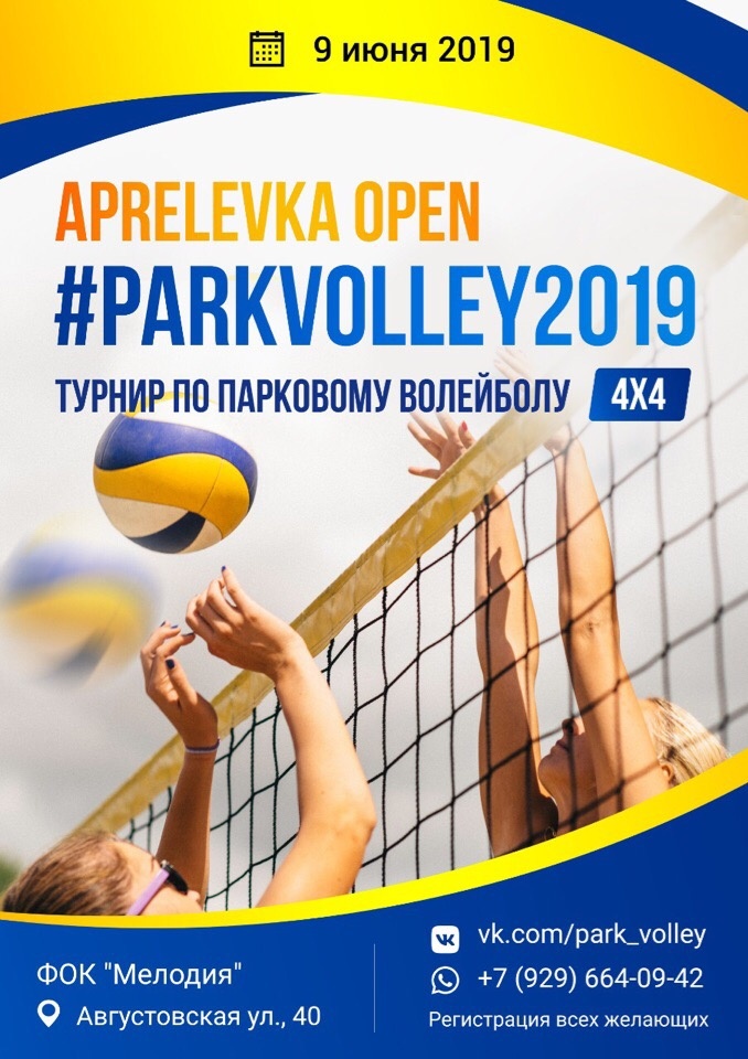 Турнир по парковому волейболу «Park Volley 2019» 4×4 состоится на площадке около ФОК «Мелодия» в Апрелевке 9 июня в 10:00. Об этом БИЗБИ рассказали организаторы соревнований. В официальной группе турнира они публикуют актуальную информацию о спортивном мероприятии! Принять участие в турнире могут сборные городских организаций и дворовые команды. Возраст участников – от 18 лет и старше! В парковый волейбол играют двумя командами по 4 игрока в каждой. Команды будут разбиты на 4 подгруппы. Получить дополнительные подробности о предстоящем турнире, а также подать заявку на участие можно по телефону: 8 (929) 664-09-42. Напомним адрес ФОК «Мелодия»: Апрелевка, улица Августовская, 40. Вход бесплатный! Приходите посмотреть на красивый волейбол и поддержать спортсменов! Для справки: Правила паркового волейбола менее строгие и более простые, хотя основные характеристики игры в волейбол сохранены. Каждый розыгрыш мяча заканчивается очком. Строго соблюдаются принципы честной игры и спортивного