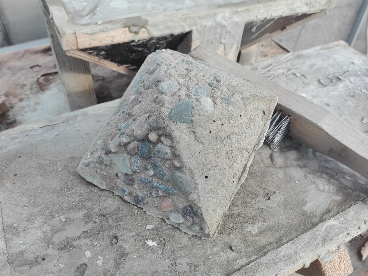 Продолжаю рассказывать о процессе изготовления декоративных блоков по технологии «мытый бетон». Как написал ранее в этой статье – изменил проект забора в сторону приобретения большей части стеновых блоков. Самостоятельно изготовлю наборные блоки столбов и часть стеновых. А именно – 120 шт., на два слоя (самый верхний и самый нижний в кладке) и 110 блоков для столбов. 420 шт. стеновых будут покупные и в кладке они будут штукатуриться по технологии «печатный бетон» или «мытый бетон». Будет комбинация текстуры и, возможно, цветом камня. На сегодняшний день треть от этого объема уже изготовлено. Видео, как я счищаю с поверхности блока несхватившийся слой бетона. При этом оголяется галечник (наполнитель): Сбоку блока полоса неочищенной части – это будущее место примыкания стенового блока. Не покрываю эту часть в форме замедлителем схватывания бетона и эта полоса не отмывается. После очистки щетками можно оставить блок и так, но смываю поверхности небольшим количеством вводы. Почему делаю