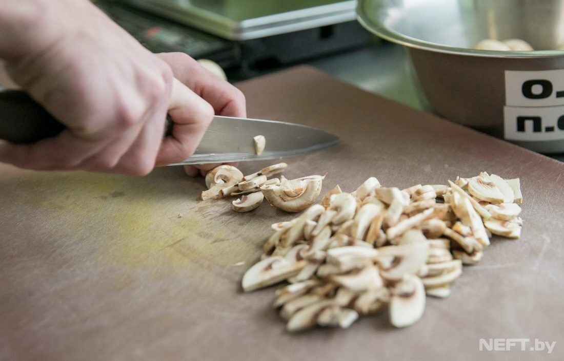 "В течение дня все партии собственной продукции должны отправиться на АЗС «Белоруснефть-Гомельоблнефтепродукт» для реализации. Далее я готовлю позиции обеденного меню: делаю гарниры, варю супы (два вида), щи. Далее занимаюсь полуфабрикатами – заступившие на смену коллеги должны иметь продукты высокой степени готовности."