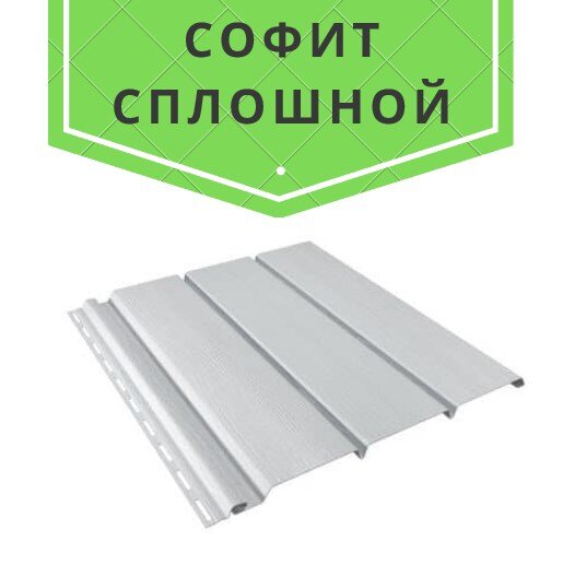 Софит – декоративная панель из металла с полимерным покрытием или ПВХ или металла, которая применяется для подшивки карнизов, козырьков и фронтонов. Стандартный размер панели софита 3000х305мм. Размер может варьироваться в зависимости от производителя.