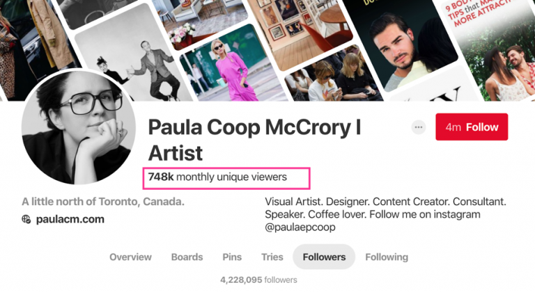 У платформы есть влиятельные лица, которые ежедневно охватывают миллионы потребителей. Один из самых популярных авторитетов Pinterest, Паула Куп МакКрори , имеет более 4 миллионов подписчиков.