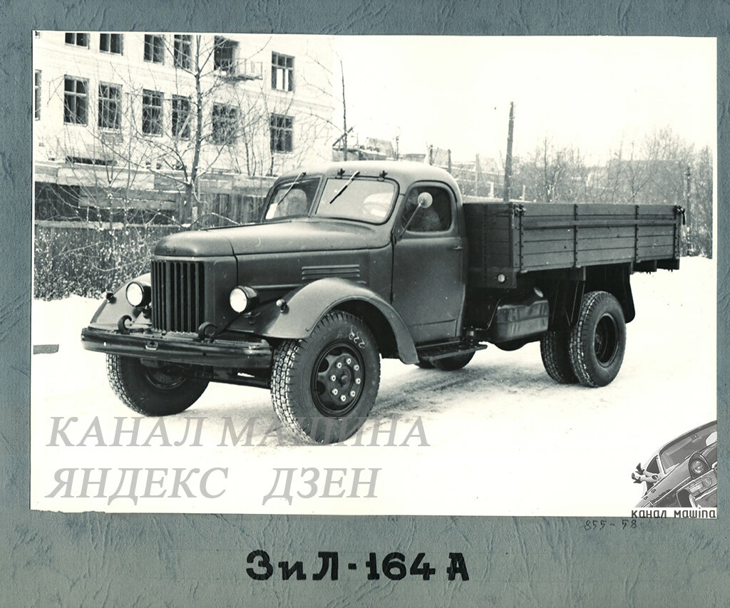 ЗИЛ-164А - это переходная модель от прежнего грузовика ЗИЛ-164 ("исправленный" вариант автомобиля ЗИС-150) к принципиально новой модели ЗИЛ-130. Внешне модель 164А не отличалась от 164, разница же между ними заключалась в применении некоторых новых узлов от ЗИЛ-130. К их числу относятся однодисковое сцепление взамен двухдискового, коробка передач с прямой высшей ступенью и синхронизаторами на всех передачах, кроме первой и задней, карданная передача с модернизированной промопорой, комбинированный тормозной кран и стояночный тормоз барабанного типа. На конвейере автомобили ЗИЛ-164А продержались до декабря 1964 года.
