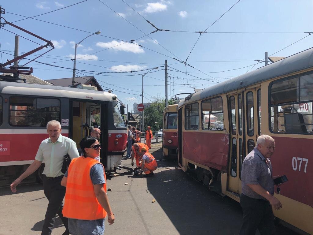 Два трамвая столкнулись в Краснодаре 6 июня, авария произошла около 09:22 на пересечении улиц им. Калинина и им. Каляева.