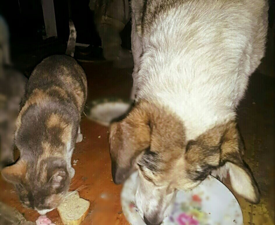 Историю эту рассказала моя подруга. У Нади животные были всегда с самого детства, поскольку живет она хоть и в городе, но в частном доме. Кого-то заводили ее родители, кого-то она сама, а некоторые и вовсе появлялись случайно. Как, например, кошка Августа. Случилась эта история около 5-ти лет назад. Как и у любого жителя частного дома, у Надежды есть и собаки. Причем не одна, а несколько. В тот момент их было три или даже четыре. Помимо этого у девушки жили еще и 2 кошки. Собаки были настоящими сторожами и потому признавали только своих кошаков. Чужих же они нещадно уничтожали. Имеющегося зверинца моей подруге вполне хватало, и заводить новую живность она не планировала. Но, как говорится, жизнь всегда вносит свои коррективы. В одно из летних утр выйдя во двор, Надежда увидела удивительную картину. Какая-то совершенно незнакомая кошка нагло ела из собачьих мисок. При этом собаки, до сей поры, мягко говоря, не любившие чужих кошек, смотрели за сим процессом и не предпринимали абс