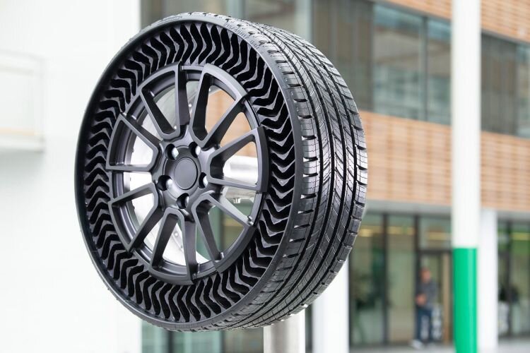 Не слишком сложно сделать выводы, что это будущее шинной технологии. В шине есть воздух, и все зависит от того, что он является важным компонентом и составляющей одной общей системы, но может просочиться, внезапно изменив баланс в сторону низкой безопасности. Предотвращение утечек в виде устранения проколов не совсем верно и правильно, но хорошо помогает в определенной степени. И все же это проблема, которую мы десятилетиями принимали как должное для владельцев автомобилей: резина на наших автомобилях иногда пропускает воздух. Что-то устаревшее на самом деле, что действительно является общей проблемой, никогда и никем не было исправлено. Это нужно было исправить. «Да», сказали Мишлен и Дженерал Моторс. Шинная компания и автомобильная компания объединяют усилия для разработки шины, которая не проколется. Как только что было сказано: главная причина того, что шины спущены, заключается в том, что они заполнены воздухом. И они должны быть накачаны, потому что тогда они смягчают удары. Если