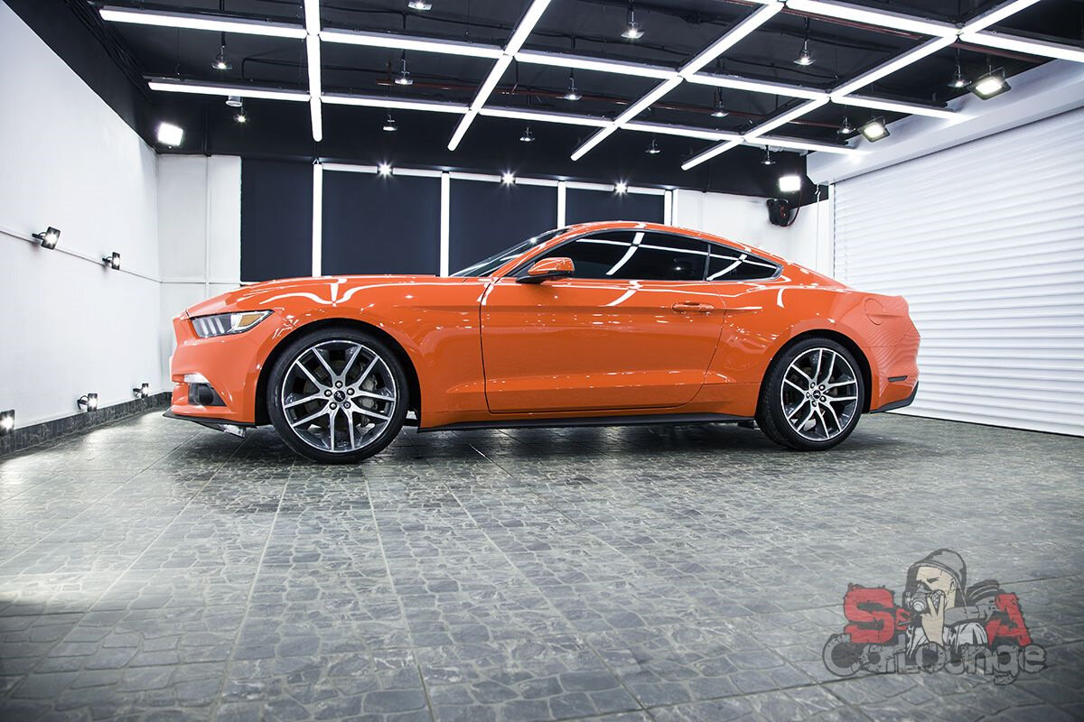 Работа с весьма интересным автомобилем Ford Mustang. Нам удалось не только восстановить ЛКП этого авто, но и передать на фото максимально точно его истинный цвет (поверьте, это весьма непросто) Список работ был следующим: — Подготовка к полировке (детейлинг мойка, многоэтапная чистка ЛКП);