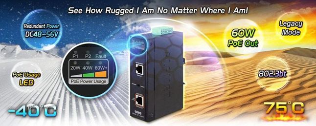 PLANET Technology Corp., специализирующаяся на разработке и производстве промышленных коммутаторов Ethernet, выпустила инжектор PoE для сетей Gigabit Ethernet. Инжектор IPOE-171 предназначен для подачи питания на оконечное устройство сегмента сети 1000BASE-T и выпущен в двух модификациях: 60 и 95 ватт.