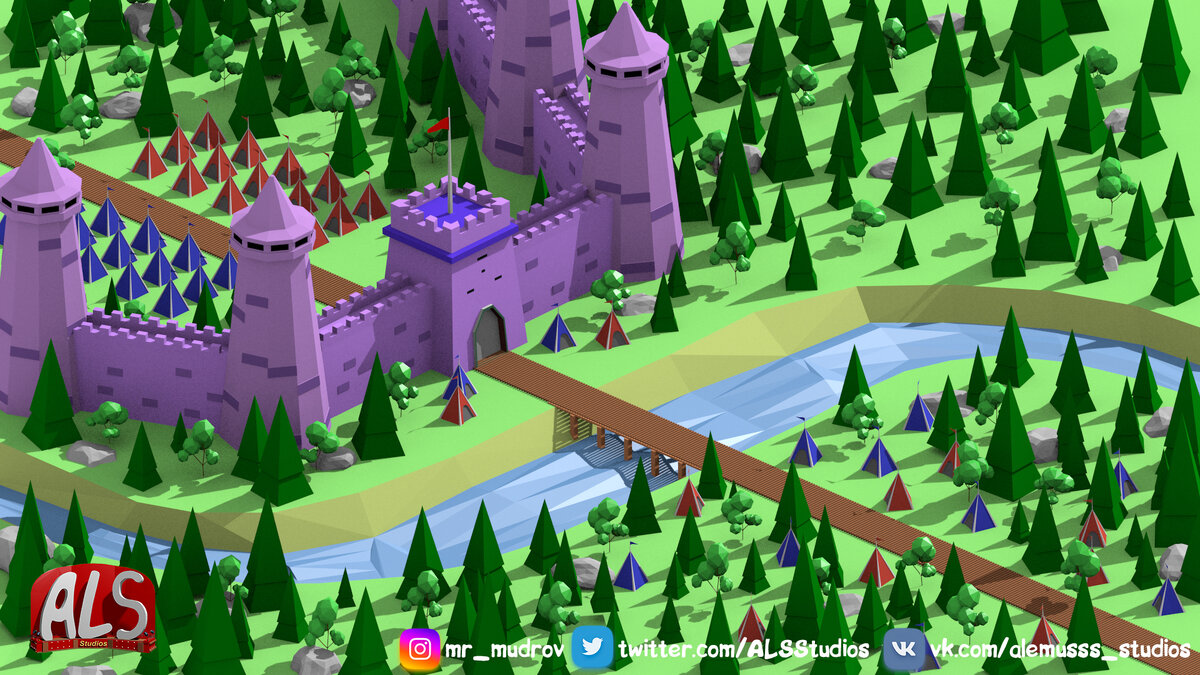 Маленькое воображаемое царство в стиле LowPoly - всегда забавно, довольно просто и непринуждённо выглядит. Да, конечно можно постепенно наращивать размеры, площади, создавая целые гектары пространства полного королевства в продолжении замка, но это в другой раз. Пока что имеем, ограничимся только этой маленькой, но забавной сценой. Я старался)