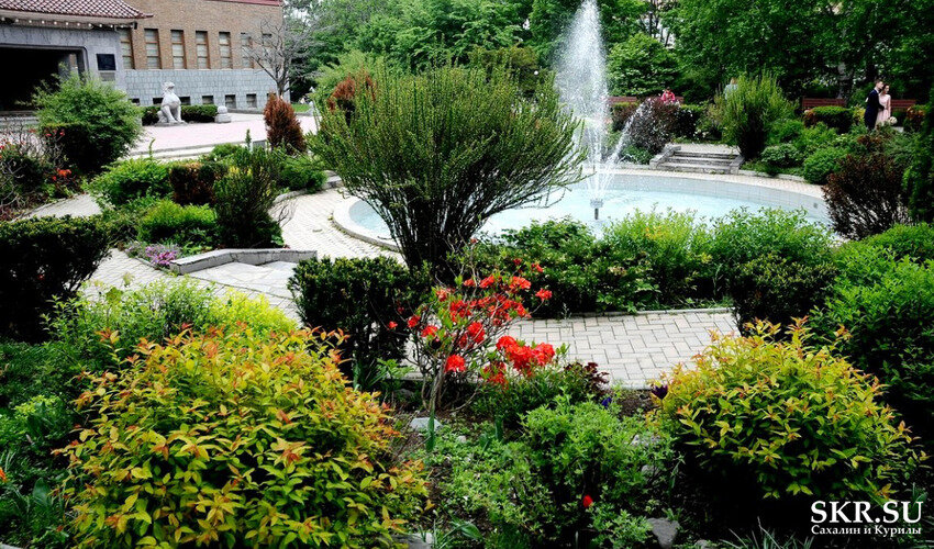 В столице Сахалинской области закончилась пора цветения тюльпанов и нарциссов на клумбах, центр города потерял недавнее многоцветье. И стал бы совсем скучным на вид, но тут выручили плоды стараний озеленителей, ландшафтных дизайнеров. Корреспондент skr.su прошелся с фотоаппаратом по Коммунистическому проспекту и запечатлел особенно симпатичные места. Вот сквер на привокзальной площади. Здесь большие по площади земельные участки окаймлены цветами. Эти облагороженные сотки здорово гармонируют с фонтанами. Пока детвора, отдыхающая в сквере, вертится у водяных струй, родители любуются цветами и фотографируются на фоне насаждений. Площадка у мэрии пока, увы, цветами не украшена, разве что поблизости установлены большие белые кашпо с фиалками. Роскошно выглядит пространство вокруг Чехов-центра. Видно, что здесь приложили руку мастера ландшафтного дизайна. Отдельные участки выполнены в японском стиле, с характерными декоративными камнями, другими атрибутами. Эффектно выглядят растения не цвет