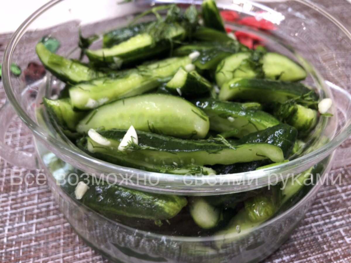 Добрый день ☼ Захотелось малосольных огурчиков?! Хочу поделиться с Вами очень быстрым способом как их приготовить и есть уже через 2 часа, а если не терпится можно и сразу. Самый простой и быстрый способ. Огурчики хрустящие и безумно вкусные. Я сама была рада что узнала о таком способе.
