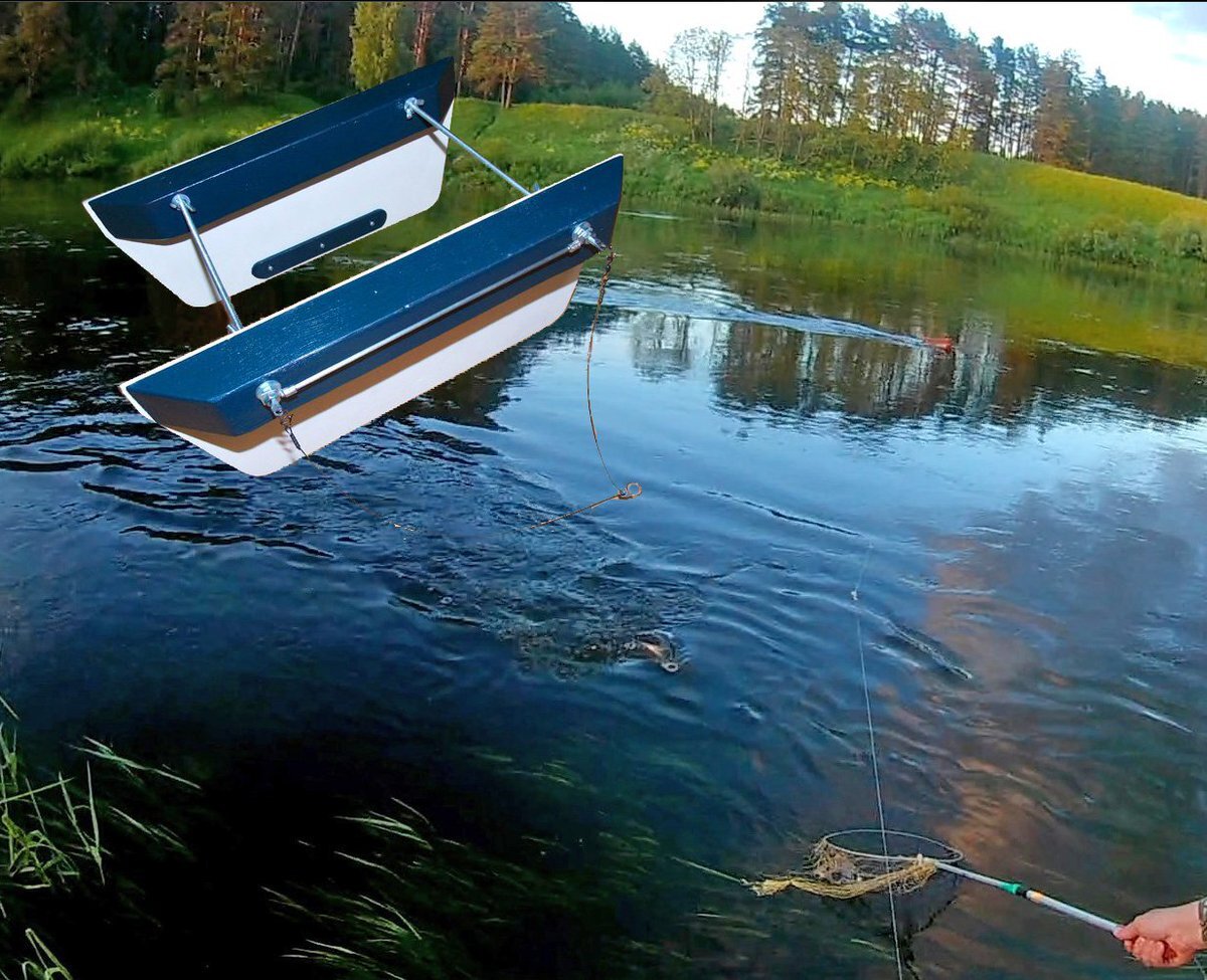 Как и всякая уловистая снасть, кораблик претерпел усовершенствование и теперь имеет вид катамарана или санок. Использование двух параллельных несущих плоскостей значительно улучшило гидродинамические свойства снасти. Во-первых, увеличилась площадь опоры, что значительно увеличило тяговую силу, а во-вторых, появилась хорошая устойчивость. Правда, есть небольшие отрицательные моменты: несколько возросла шумность от турбулентных потоков, а при резкой и значительно сильной потяжке за буксирную леску - кораблик может выскочить из воды и, сделав неполное сальто, перевернуться. Однако это тоже зависит от конструкции катамарана, правильно сделанный катамаран, лишен этих недостатков. В интернете можно найти чертежи для самостоятельного изготовления кораблика, если нет такой возможности можно приобрести в интернете, например у нас http://huntru.com , в рыболовных магазинах их нет, видимо из за малого спроса.