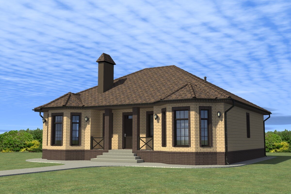 Вальмовая кровля + эркеры — проект одноэтажного дома с популярной планировкой: 135,65 м2!