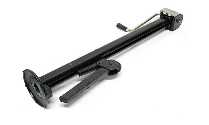 Одна из старейших моделей домкратов – винтовая. Грузоподъемность составляет 0,5-1,0 тонну в зависимости от модели. Принцип работы очень просто: при вращении рукояти момент передается на винт механизма при помощи конической шестерни. Соответственно, вращая в одну сторону, можно поднять откидной подхват, а в другую – опустить. Досадной особенностью винтовых домкратов является то, что площадь опоры очень мала. Если специальная проушина автомобиля забилась грязью или насквозь проржавела, при подъеме автомобиля она просто лопнет.