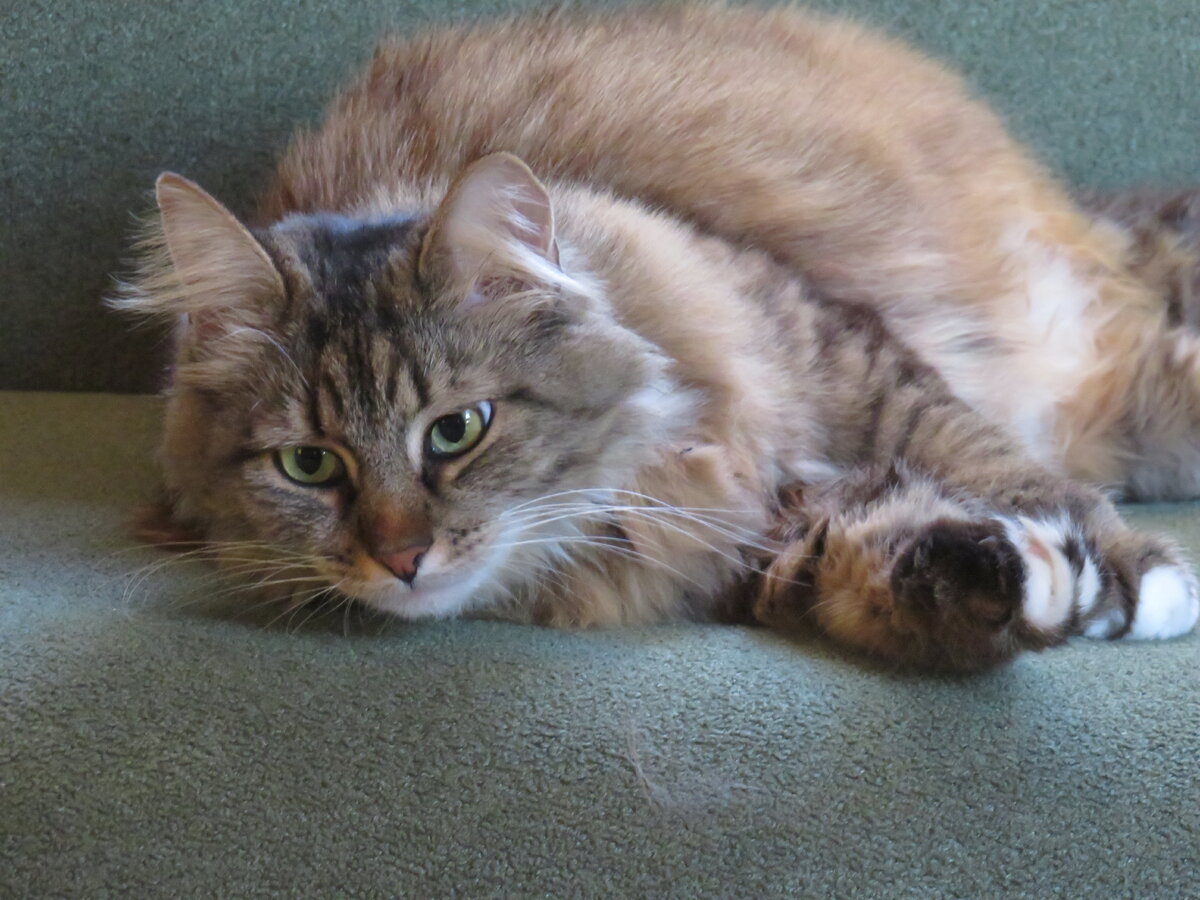 Пуша - не очень разговорчивая. Мяукать мы вообще считаем ниже своего достоинства. Ну, в машине только, жалуясь на жизнь из переноски. Звуки, издаваемые Пушей в менее драматичных условиях, делятся на четыре вида. -Традиционное стандартное мурчание, когда сидим на руках и получаем начесывание брюх и ух. - Шипение, когда нам не нравится, когда у нас из штанишек гадкие люди репейники выдирают. - Короткое приказное "Мяк!", когда мы хотим играть, а вы зашли в комнату, а мы сидим такие на диване и ждем, когда вы возьмете палку с мышью на веревочке и приступите к своим основным обязанностям. А вы не приступаете. Потому что вы тупые. Вам надо напоминать. Мяк! -Странное кряхтение и пощелкивание, когда мы смотрим через стекло на дроздов и делаем вид, что сейчас-сейчас, мы как выпрыгнем , как выскочим, полетят клочки по закоулочкам... Это, конечно, если окно закрыто. При открытом окне мы дроздов побаиваемся и правильно делаем - дурная птичка с вредным характером. Но и без вербального