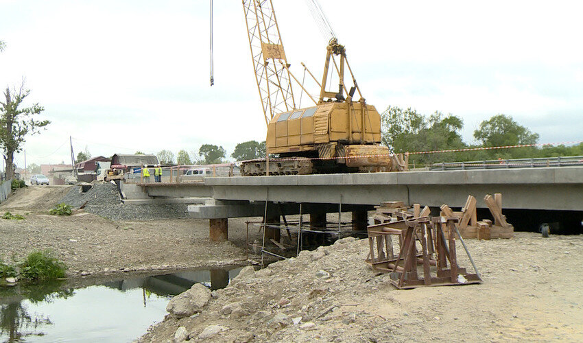 Временные неудобства для автомобилистов, въезжающих в планировочный район Новоалександровск, закончатся этой осенью. Возведение моста через реку Красносельскую вышло на финишную прямую. Сейчас строители ждут поставку мостовых балок с материка, но в целом работа идет по графику и без отставаний. Как стало известно skr.su, автомобилисты уже почти полтора года проезжают участок улицы Советской, заметно нервничая. Объезд узкий и в часы пик здесь образуется пробка. Однако без этой вынужденной меры обойтись было нельзя. Старый мост, который был на этом месте, построили еще 40 лет назад, и он морально и технически устарел. По словам Андрея Яхменёва, начальника отдела мостов Управления автомобильных дорог Сахалинской области, он не соответствовал никаким нормам ни по безопасности, ни по грузоподъемности. В марте прошлого года здесь началась масштабная стройка. Она финансируется за счет средств областной адресной инвестиционной программы. Стоимость объекта составляет 168 миллионов рублей. Специ