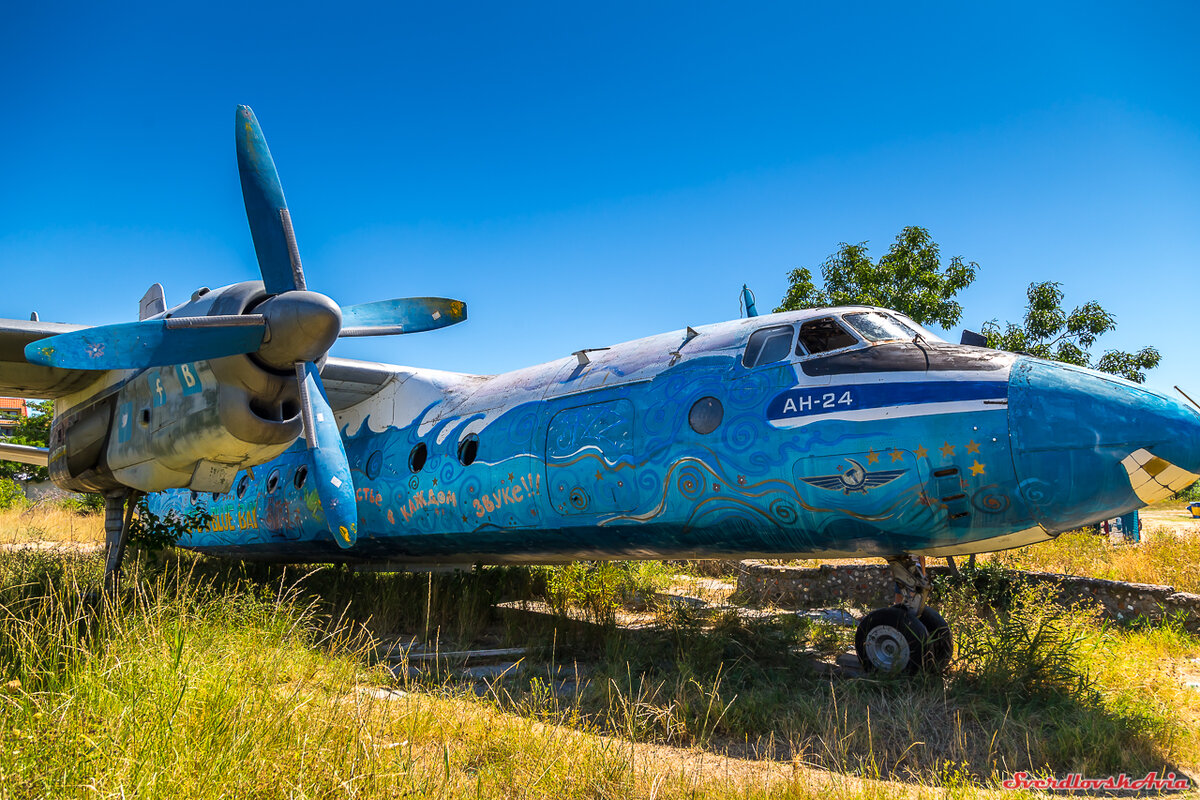 Стоит в Коктебеле Ан-24, давно стоит, аж с 1979-го года, в советское время было кафе-мороженое, видеосалон. До 2010х годов он стоял в ливрее Аэрофлота, и довольно бодро себя чувствовал.