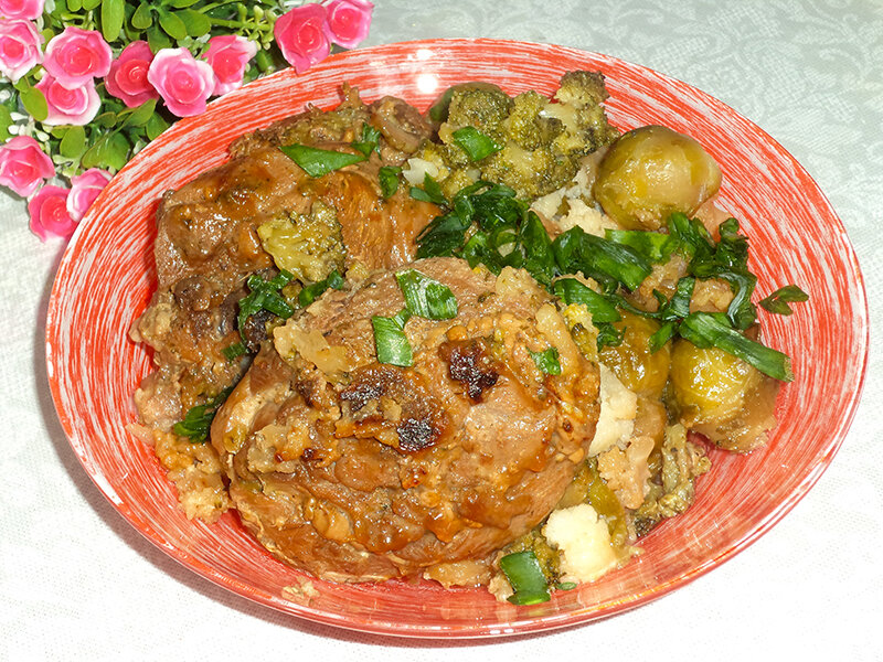 Индейка получается очень сочной и ароматной, а овощи приобретают приятный аромат и вкус.