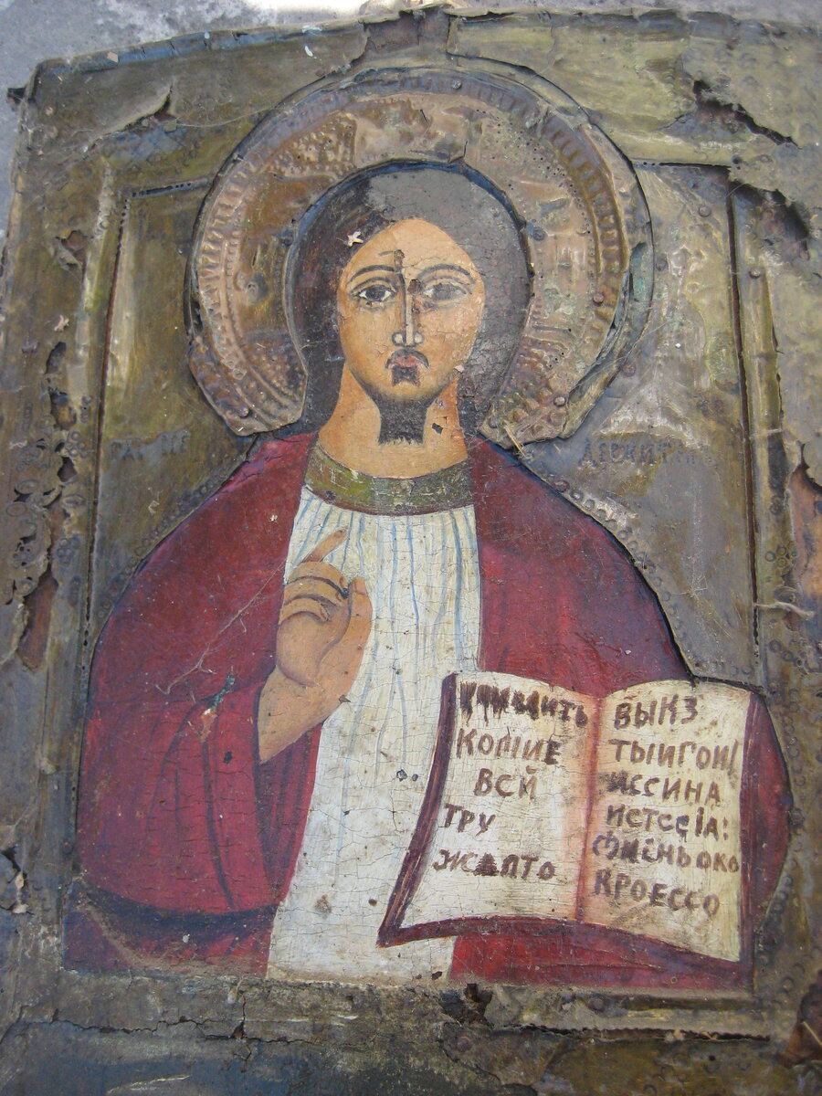 Вчера телевизоры забирал из старого дома. Мои соседи, прикупили еще один старый дом в деревне и освобождали площади для дальнейшего проживания. Выкидывали все. Мне в нагрузку дали коробку с иконами и церковной литературой:- На, если хочешь, забирай. Ты любишь старину, вот тебе и пригодится. Покопавшись в коробке нашел икону. Вот фото: Не могу понять надписи. Рисована она на доске, и от времени её выгнуло: Образ окаймлен медью или латунью: Время не пощадило. На металле просматривается узор: Нашел пару слов по сторонам от лика: Интересно , чей это лик. Может кто знает. Последняя неделя у меня полна разными интересными вещами. О них я уже упоминал в своих статьях: https://zen.yandex.ru/media/id/5c333162b6ddc300ab5a818d/takogo-vy-ne-videli-i-u-vas-tochno-ne-bylo-5cf7a1d2e24ab100bce1bc00 Вот монетка, мне уже сказали что это: https://zen.yandex.ru/media/id/5c333162b6ddc300ab5a818d/takogo-vy-ne-videli-i-u-vas-tochno-ne-bylo-5cf7a1d2e24ab100bce1bc00 Я не устраиваю тесты на любознательность! Я