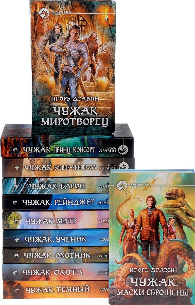 Всем привет! Хочется обсудить произведение «Чужак» Дравина. Серия состоит из одиннадцати книг. Кто-то считает произведение интересным или одним из лучших в жанре, кто-то бросил на середине серии, кто-то считает произведение совсем провальным и неинтересным. Остаться равнодушным сложно. Лично у меня сложились очень противоречивые чувства. Серию я дочитала полностью, но тут сыграл момент патологического желания доводить все до конца. Плюсы: довольно хорошо прописан мир, в который попадает герой. Характер персонажей также довольно хорошо проработан. Довольно интересная приключенческая линия. Минусы: роялей в кустах слишком много, весь мир крутится вокруг главного героя, хотя он является попаданцем, любовная линия местами напоминает фантазию прыщавого подростка – три жены живут и радуются, герой эдакий гигант, способный удовлетворить одновременно толпу женщин. Любовная линия разочаровала. Главный герой Влад попадает из нашего мира в параллельный Арланд. В книге не раскрыт способ попа