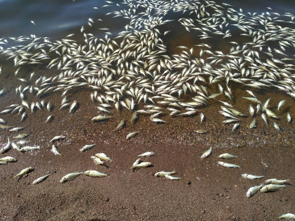 Жалобы на состояние Ласкового пляжа появились еще вчера. Очевидцы рассказали, что берег усеян мертвой рыбой, в воде плавает непонятная зеленая жижа, а поверхность залива покрыта пленкой.