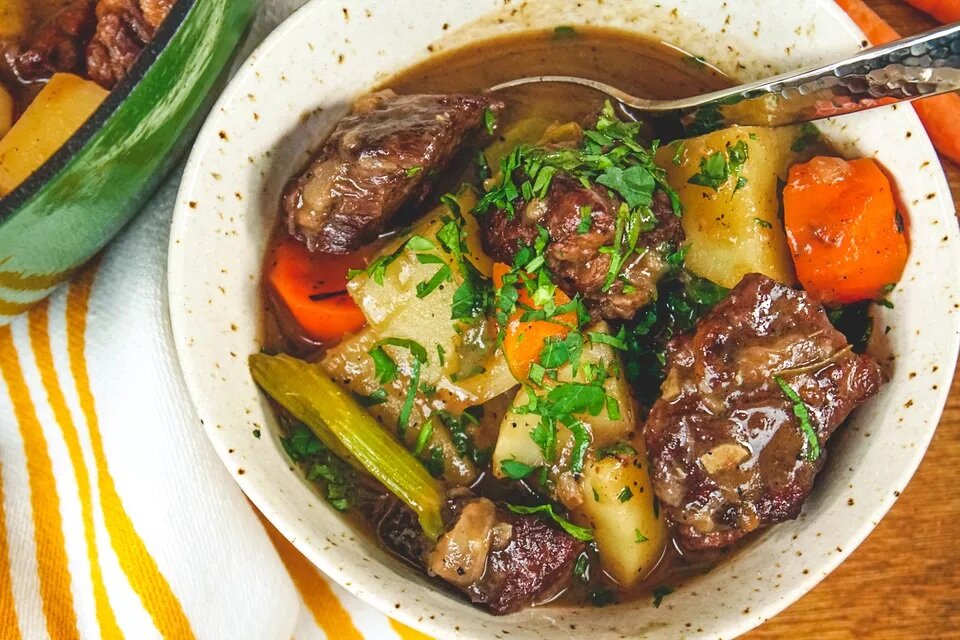 Вся эта соединительная ткань способствует мега-жеванию при приготовлении на сильном огне . Но когда тушить медленно? Они тают и превращается в желатин, который покрывает мышечные волокна, придает мясу замечательное сочное ощущение во рту, одновременно добавляя огромное тело вкуса к вашему рагу. Говяжьи щечки, голяшки, пашина, шейная часть, тазобедренная часть, лопаточная часть, грудинка также насыщены мясным ароматом.