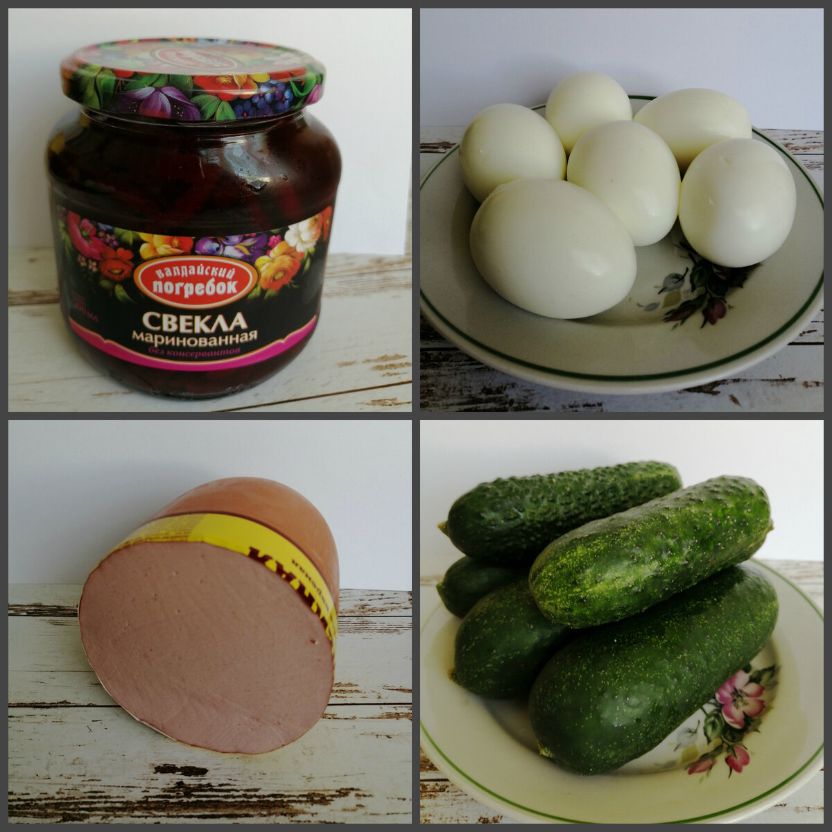 Здравствуйте дорогие друзья. На улице лето, жарко, и мы с вами будем сегодня готовить на обед холодный борщ. Я конечно " америку не открою " в приготовлении борща, но может кому-то будет полезен мой пост. Нам потребуется : маринованная свекла, свежие огурцы, вареная колбаса, сваренные вкрутую яйца, сметана и зелень. Яйца очищаем от скорлупы, мелко режем, выкладываем в отдельную мисочку ( они нам понадобятся при сервировке стола ) Режем колбасу мелкими кубиками. Пересыпаем в кастрюлю. Берем огурцы. Я люблю счищать шкурку, моей семье так больше нравится. вы режьте огурчики как вам нравится ( с кожурой или без ). Добавляем огурчики в кастрюлю к колбаске. Маринованная свекла в банке , как правило, нарезана длинными брусочками. Мне это тоже не очень нравится и я ее нарезаю кубиками, предварительно слив маринад в кастрюлю, где лежат колбаса и огурцы. Порезанную свеклу кладем в кастрюлю к нашим овощам. Теперь в кастрюлю наливаем кипяченой воды. Солим по вкусу. Наш холодный борщ готов