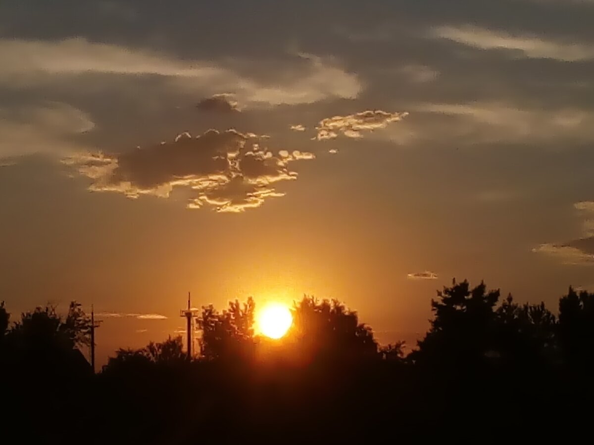Жизнь как-бы замедляется. Ленивые куры готовятся ко сну, соседский пёс развалился в теньке. Наконец - то можно расслабиться и, усевшись на крылечко с чашкой ароматного травяного чая, насладиться тишиной и красотой летнего вечера. Дневные птички примолкли и скоро на охоту вылетит сова. Оказывается, совы не ухают, как мне думалось раньше, а кричат довольно таки противно. Вот соседская коза пришла сказать "Спокойной ночи" и поклянчить хлебушек. Знает, что мы специально для нее припасаем несколько кусочков. В вечернем мареве всходит луна. Сегодня она бледная. И вот наступает долгожданный момент, когда солнце уже низко и ты зачарованно наблюдаешь, как небо меняет краски с блеклых на ярко-красные, фиолетовые, оранжево-желтые.