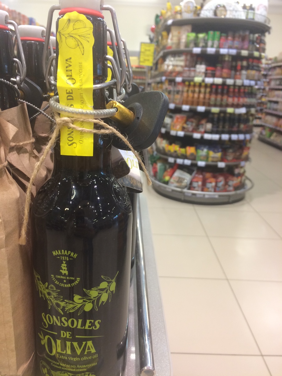 Пару дней назад зашли в привычный супермаркет и заметили на полке новиночку. Среди других бутылок с оливковым маслом стояла вот такая: И все бы ничего, да бутылка показалась очень знакомой. Рассмотрели поближе, и правда, фирменный знак корабля и форма емкости для пива "Афанасий марочное" (неплохое, кстати пиво). Вот масло: А вот и пиво: Сходства очевидны :) Дальше конечно же начали изучать упаковку, и нашли почему бутылки одинаковые. Разливают на одном заводе. Скажете, а что тут плохого. Лично мое мнение, каждый должен заниматься своим делом. Получается, бочками привозят и разливают. Доверия не вызывает, хотя и масло-то возможно неплохое, с учетом стоимости в почти 500 рублей за 0.5 литра.