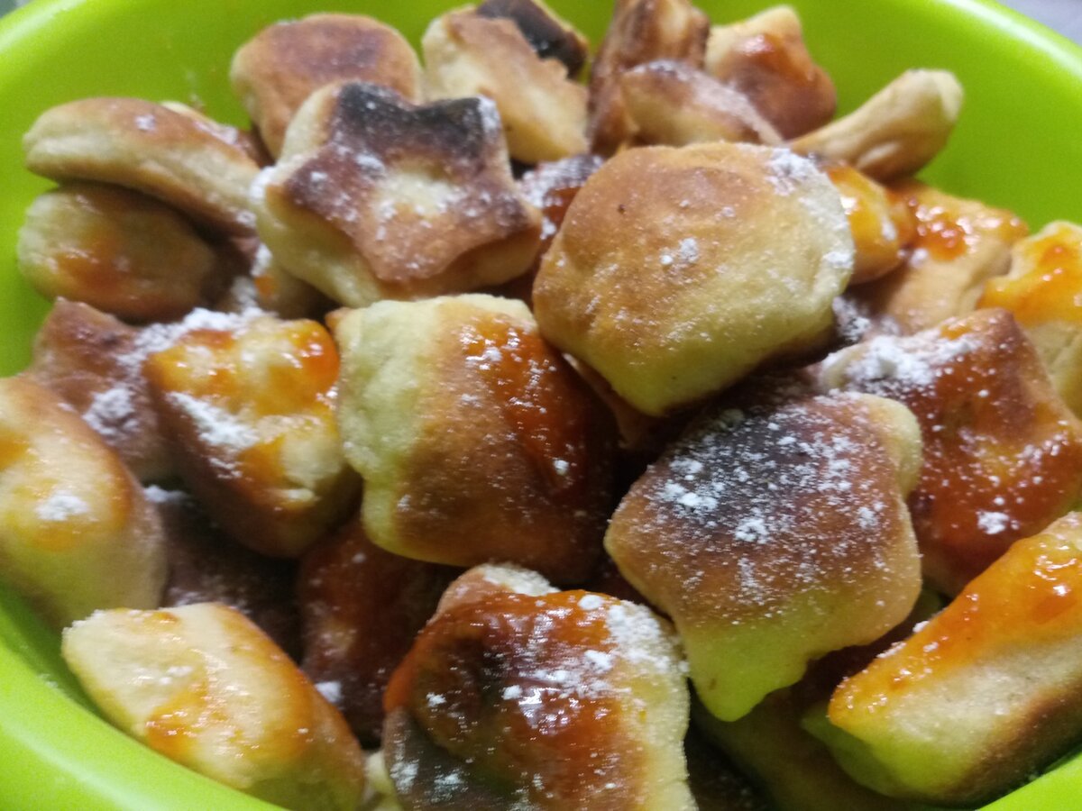 Самая лучшая награда от вас это ваши лайки и репосты,спасибо что щедро одариваете. Для рецепта мне понадобилось: 250 мл кефира 5 ст л сахара 1 ч л соды 0,5 ч л соды 1 ст л растительного масла 1 яйцо 3-4 ст муки Ванилин по вкусу Кефир с содой я соединила и оставила на 10 минут постоять, Отдельно взбила яйцо с сахаром,солью и растительным маслом,яичную смесь соединила с кефиром и хорошо перемешала. Постепенно добавляя муку замесила тесто. Раскатала тесто в пласт и формочкой вырезала фигурку звездочка и пожарила пышечки на растительном масле. Смазала немного вареньем и посыпала сахарной пудрой. Детишки сьели эти вкусные звездочки за вечер. Удачной вам выпечки и приятного аппетита!! Пишите ваши отзывы и пожелания в комментарии - я все читаю.