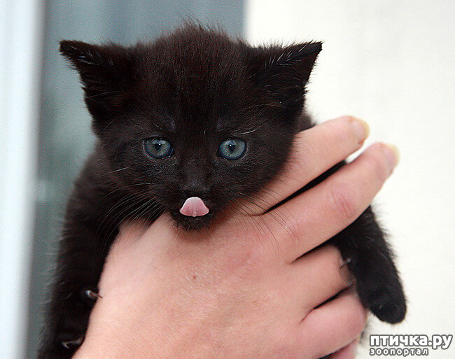 Пошла мама в магазин за продуктами на поминки, возвращается и говорит: "А вы что не видите, я ж не одна!" То, что мы приняли за бахрому выбившегося платка, оказалось крохотным абсолютно черным котенком. Оказалось, у магазина женщина раздавала котят от своей кошки, а черного никто не хотел брать из суеверия. Мама его пожалела и забрала. Нам надо было уезжать, поэтому котенка отправили в комнату, поставили ему еду и лоточек, а дверь закрыли - все-таки две собаки и еще взрослый кот дома. Вечером вернувшись мы никак не могли найти крошку. Но потом громкое злое урчание его выдало, он спрятался за сняты