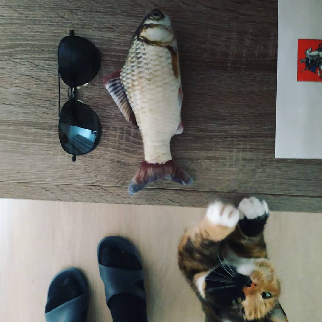 Седьмой привет из дома передает обожаемая кошечка Кнопа, которая уехала из приюта домой 8 февраля 2018 года (номер 3229). "У кисы новый друг. Китайский карась (поймали на али экспресс). Набит синтепоном, мягкий, удобный для таскания в зубах домашним хищником. Теперь у меня в постели по утрам не мыши и тигры, а жирный карась. Рыбу зовут Рома - рыба Рома. Кстати, китайский ассортимент предлагает не только карасей, там на любой вкус есть и скумбрия, и сом, если кот веган, то можно ему выбрать игрушку в виде брокколи" Хотя верёвочки - это любовь навсегда)))". Еще больше историй: https://murkosha.ru Вы – счастливый хозяин котика из приюта? Поделитесь радостью с друзьями и близкими в социальных сетях! Подарите шанс другим подопечным приюта встретить своего человека! Подопечные приюта "Муркоша" благодарны всем, кто помогает сделать их жизнь чуточку лучше! >>У нас море интересного! Присоединяйтесь<<