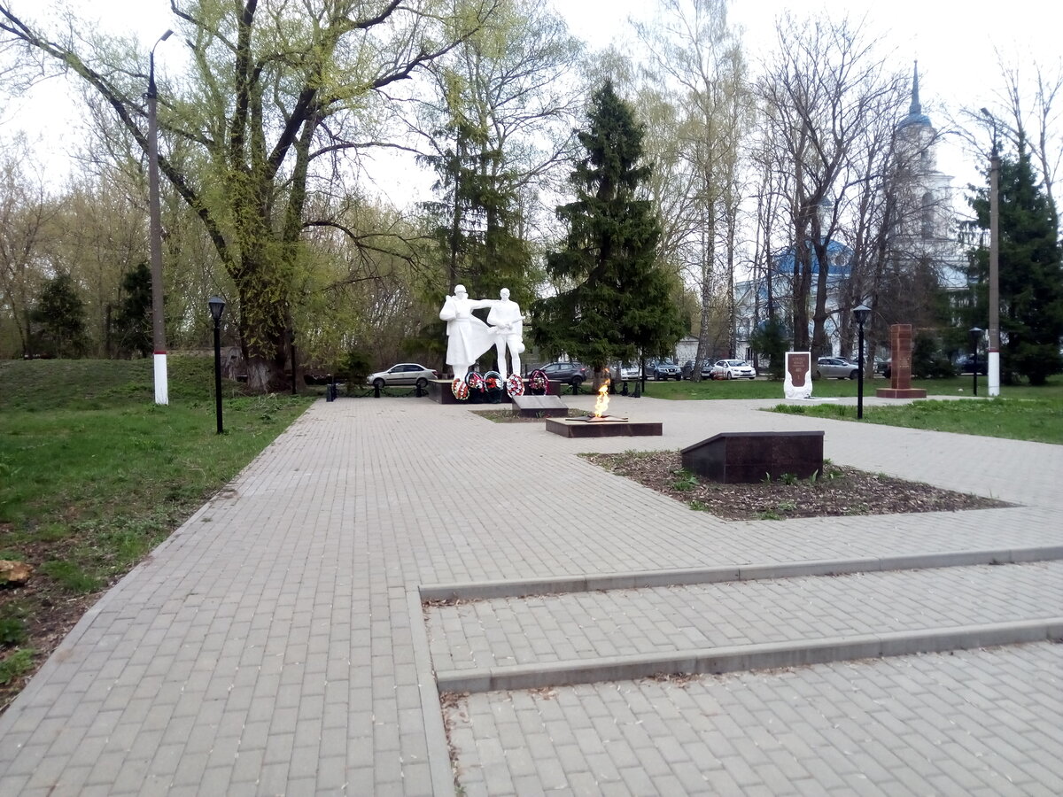 Одним из наших маршрутов во время автопутешествия по Тульской области был микрорайон города Донской под названием Бобрик-Гора. Это место интересно тем, что здесь находилась усадьба графа Бобринского - внебрачного сына императрицы Екатерины Великой. Сейчас это обычный жилой микрорайон. Однако от того времени до наших дней сохранилась усыпальница-мавзолей Бобринских и несколько зданий от его усадьбы - сейчас в них расположен историко-мемориальный музей "Бобрики". Предлагаю вам вместе с нами немного прогуляться по этому микрорайону. Припарковав автомобиль возле храма и расположенного рядом Вечного огня, мы направились в сторону парка. В этом парке должна находиться усыпальница графов Бобринских. Сам сквер, где горит Вечный огонь был достаточно чист и убран. После того, как мы сфотографировали Вечный огонь и памятник, что находится за ним, мы отправились в сторону парка. Дорога пошла под какие-то трубы. Слева от нас находилось какое-то старое и наполовину разрушенное здание. Не знаю, как