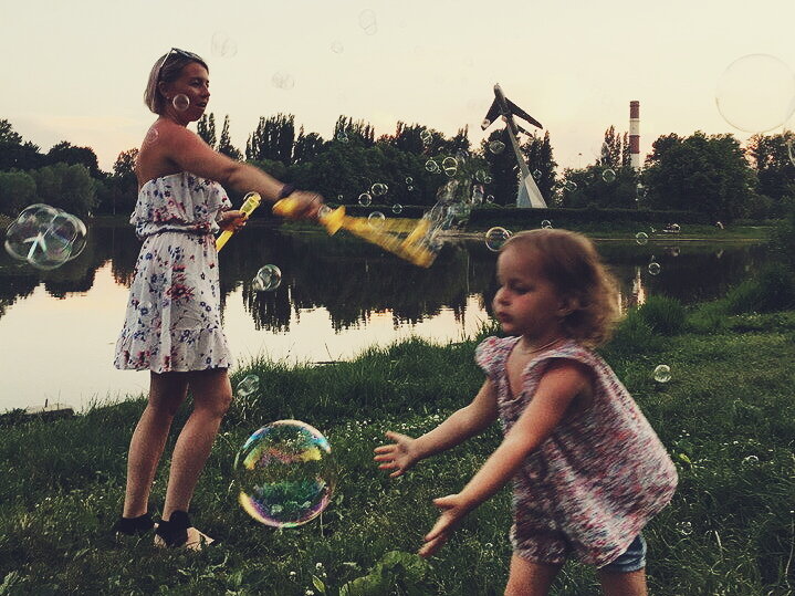 Ну разве есть равнодушные к этим радужным шарикам, парящим по воздуху? Моя дочь их обожает. С момента как я стала мамой, я официально могу радоваться, пуская мыльные пузыри в парках и на улицах, и никто не посмотрит криво. Как только достаёшь заветную палочку - сбегаются все дети! У дочки всегда появляется компания, завязываются новые знакомства. Есть конечно и недовольные, к примеру однажды один толстосум на дорогущей тачке стал возмущаться, что мыльные пузыри оставляют пятна на его отпалированной машине... а на пляже жующей без конца даме пузырь попал на бутерброд. Хотите вспомнить детство и получить порцию радости? Просто запустите мыльные пузыри!