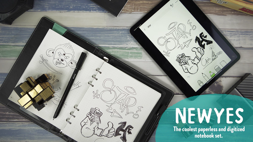 Вы никогда не думали, что записи на бумаге можно оцифровывать, не печатая их на устройстве? Newyes — набор из бумажного блокнота и планшета для письма и заметок. Набор состоит из бумажных листов и электронного планшета, которые закреплены в переплете. Идея в том, что вы пишете на бумаге или планшете и все ваши заметки синхронизируются в облаке. То есть даже если у вас под рукой нет Newyes с записями, то все они будут доступны в приложении. Newyes распознает 71 язык, позволяет делиться записями, искать по сохраненным заметкам и записывать аудио. В приложении можно воспроизвести процесс написания заметки. Фишка распознавания записей на бумаге кроется в ручке, которая с помощью встроенной камеры фиксирует точное расположение всего, что вы пишете. Ручка распознает 1024 степени нажатия и снимает со скоростью 200 кадров в секунду, соединяется с устройством по Bluetooth 4.2, работает 8 часов от одного заряда, заряжается за 1,5 часа и весит 22 гр. Ручка сама выключается, когда не используется