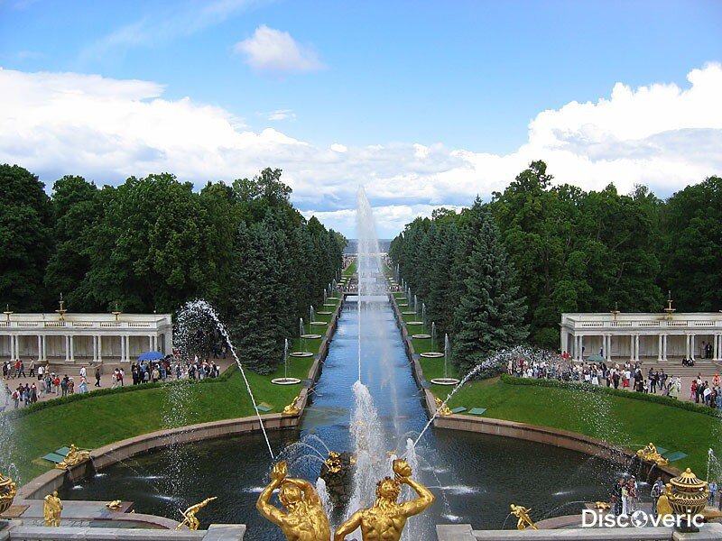 Ансамбль парков и дворцов Петергофа является памятником не только российской архитектуры, но и садово-паркового искусства, который относится к началу 18 века. Это место известно на весь мир благодаря своим фонтанам, его даже называют столицей фонтанов, что и неудивительно, потому что на его территории собрано 176 фонтанов и 4 каскада. Построили его в честь триумфальных побед России при выходе к Балтийскому морю. Ансамбль Петергофа включает в себя павильон Эрмитаж, Екатерининский корпус, дворцы Марли и Монплезир, дворец Коттедж и Большой дворец. Очень живописными являются и парки Петергофа, среди которых Английский парк, Луговой парк, Верхний сад, Колонистский парк, Нижний парк, состоящий из Оранжерейного и Менажерейного садов, парк Александрия, сады Венеры и Бахуса. Всем известно, что основателем и создателем парк является Петр I. Изначально парк строили как загородную резиденцию государя. Строительство началось в 1714 году и в его строительстве принимали участие лучшие архитекторы,
