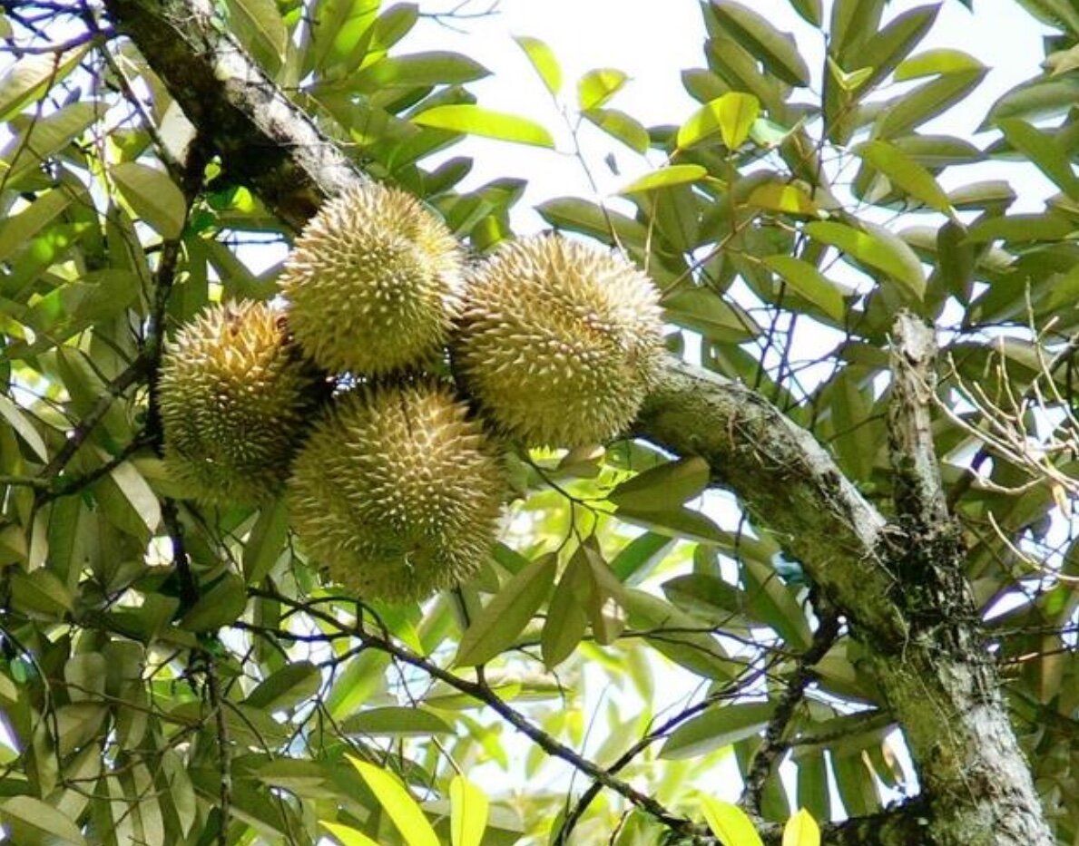 Юго-Восточной Азии , в частности, в Таиланде, считается,что дуриан омолаживает организм. Содержащиеся в нём марганец и диетическое волокно очень полезны диабетикам, так как способствуют регуляции уровня сахара в крови. Из различных частей растения готовятся лекарственные препараты для лечения простудных заболеваний, ряда кожных болезней, желтухи. Дуриан улучшает работу кишечника , выводит канцерогены. Плоды его крупные, круглые, тяжёлые. С величиной около 30 см в диаметре и массой более 5 кг падающий фрукт очень опасен! Мякоть закрыта жёсткой плотной коркой с многочисленными шипами. Колючая оболочка зелёно-коричневая или желтоватая, внутреннее содержимое – белое или бежевое. Дуриан обладает отличными вкусовыми качествами и считается изысканным деликатесом. Его употребляют в свежем виде, а также сушат, варят, солят, приготавливают различные соусы. Измельчённые семена служат отличной приправой. Плоды содержат много витаминов и микроэлементов: амино