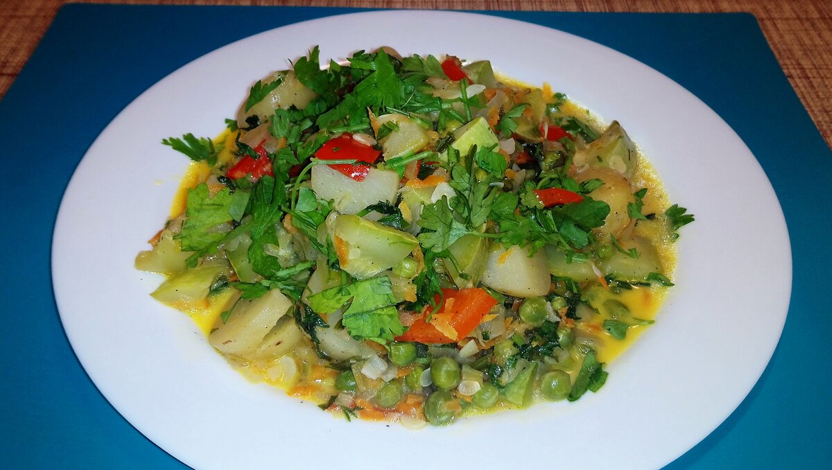 Это очень простое и вкусное блюдо. Конечно я тоже отношу его к сезонным, так как зимой купить кабачки и молодой картофель весьма накладно, а вот начало лета для такого кулинарного рецепта - отличный сезон. Итак, тушеные овощи можно использовать, как гарнир к любому мясу или рыбе. Также это может быть и самостоятельное блюдо, если на улице жара и хочется чего-то легкого, нежирного. Ингредиенты: Кабачки 500 г