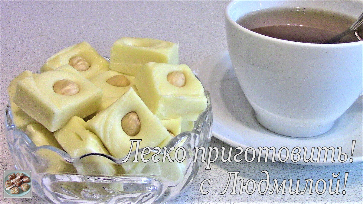 Вынимаю застывшую конфетную массу из формы, кладу ее на разделочную доску и ножом разрезаю на отдельные квадратные конфетки.