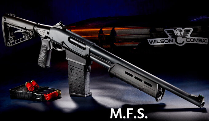 Wilson Combat расширили линейку своих ружей фирменной сборкой MFS (Magazine Fed Shotgun - Ружье с Магазинной Подачей) основанной на популярной платформе Remington 870 DM с ручной перезарядкой продольно подвижным цевьем (помпа) и съемным коробчатым магазином. Оружие проверяется опытными мастерами, доводится на производстве и оснащается фирменными деталями WC включая: пистолетную рукоятку Wilson Combat/BCM Starburst, сквозной кнопочный предохранитель, съемный механический прицел из регулируемого кольцевого целика Trak-Lock и мушки с оптоволоконным индикатором, а также прочного защитного покрытия Armor-Tuff. Три варианта прикладов и опциональное цевье с крепежными слотами M-Lok позволят подстроить надежную стрелковую систему под требования пользователя и возможные сферы эксплуатации. Дополнительные данные